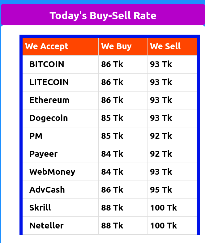 আশা করি যারা অনলাইনে বিভিন্ন মাধ্যমে কাজ করেন তারা এখানে Bitcoin,Usd, Litecoin,Ethirum,Skill,Web Money, অনলাইনCurrency থেকে Bkash,Rocket,Nogod এ নিতেপারবেন খুব সহজে।